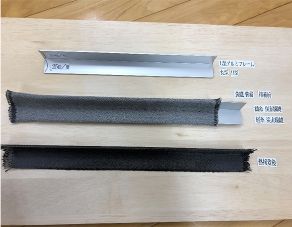 織ネ-ム専門メ-カ-中川産業(株)は熱可塑性CFRP用織物を提供出来ます。 炭素繊維とナイロンを組み合わせた糸で織物を製作しました。 この織物に熱を加えることによりさまざまな形状の熱可塑性CFRPが製作出来ます。 ご要望の方はご相談下さい。